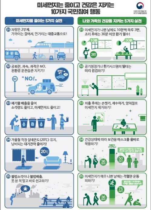 이밖에도 국민 개개인이 생활 속에서 실천할 수 있는 '10대 국민 참여 행동'이 마련됐다. 겨울철 적정 실내온도(20℃) 유지와 친환경 운전습관 지키기 등이 담겼다.