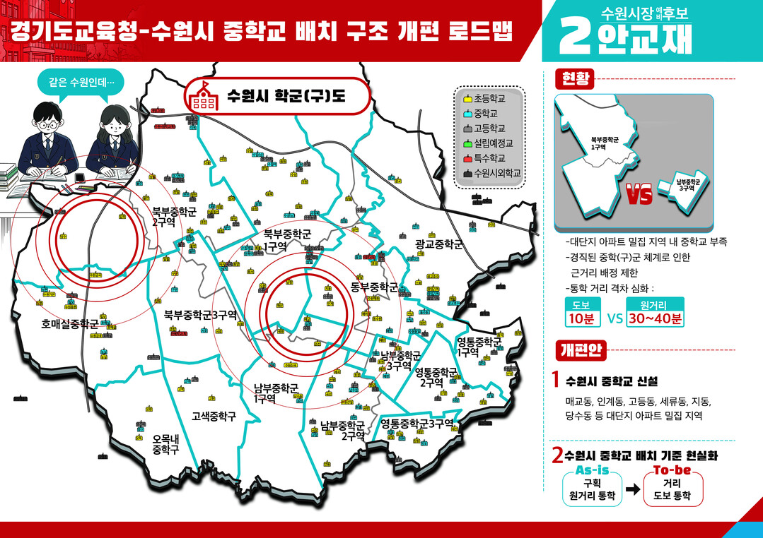 | ▲ 수원시 중학교 배치 구조 개편도. [안교재 예비후보 측 제공] |