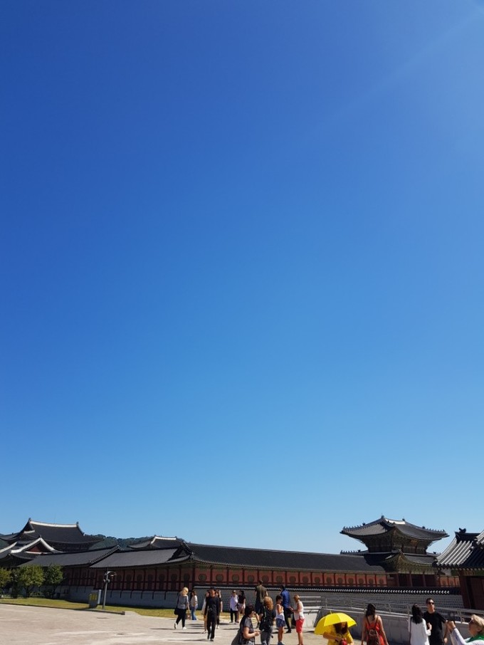 9일 일요일 서울 종로구 경복궁에 외국인을 비롯한 관광객들이 관람을 위해 입장하고 있다. 기상청은 이날 아침·저녁은 쌀쌀하고 낮엔 기온이 오르면서 일교차가 크게 나타나겠다고 예보했다.