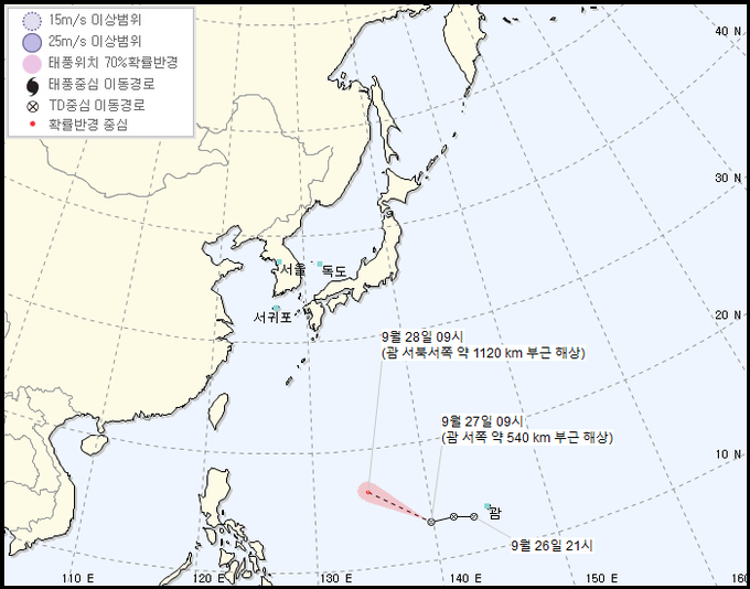 27일 기상청은 이틀 전 오후 3시께 괌 동남동쪽 약 900km 떨어진 해상에서 태풍의 전 단계인 열대저압부가 발생했다고 밝혔다.