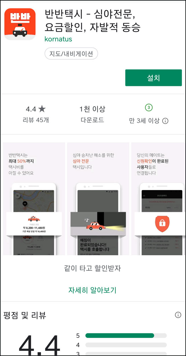 반반택시는 이용객의 자발적 택시 동승을 중계해 심야 시간대 발생하는 택시 승차난을 해소하기 위해 출시된 앱이다. 지난 7월 17일 규제 샌드박스 실증특례 대상으로 선정돼 8월 1일부터 서비스를 시작했다. 하지만 아직 이용자들이 많지 않다. 도입 초기 단계라 홍보가 안 된 탓도 있겠지만, 손님이나 택시 기사 모두에게 큰 도움이 되지 않는다는 목소리가 나온다.