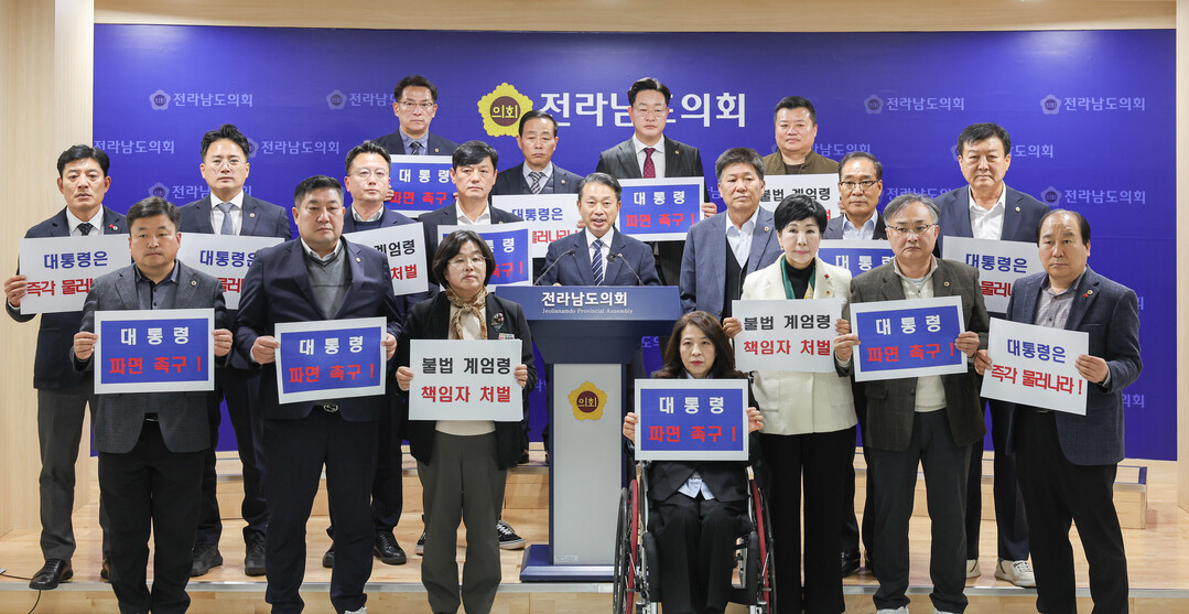 윤석열 대통령이 촉발한 '비상 계엄령 선포'에 대해 광주·전남 광역의회와 기초의회가 국회에 대통령직 파면을 촉구하고 나섰다.