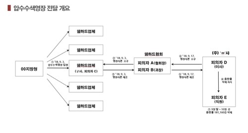 김씨 등 협회 관계자 2명은 이밖에 지난해 8월 경찰의 '웹하드 카르텔' 집중단속 방침이 발표된 뒤 압수수색을 받은 회원사로부터 영장 집행 일자와 집행 기관, 장소, 집행 대상 물건 등 내용을 파악해 다른 회원사들과 공유한 것으로 조사됐다.
