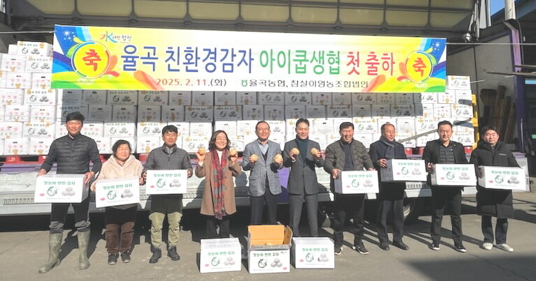 경남 합천군은 율곡면 율진 감자작목반(대표 문병기)이 지난달 아이쿱 생협과 체결한 '2025년산 친환경감자 130톤 공급계약'에 따라, 11일 율곡농협에서 첫 출하식을 개최했다고 밝혔다.