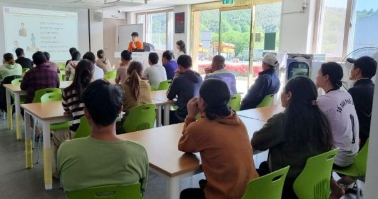 | ▲ 외국인 계절근로자 안전교육 현장 모습 [함양군 제공] |