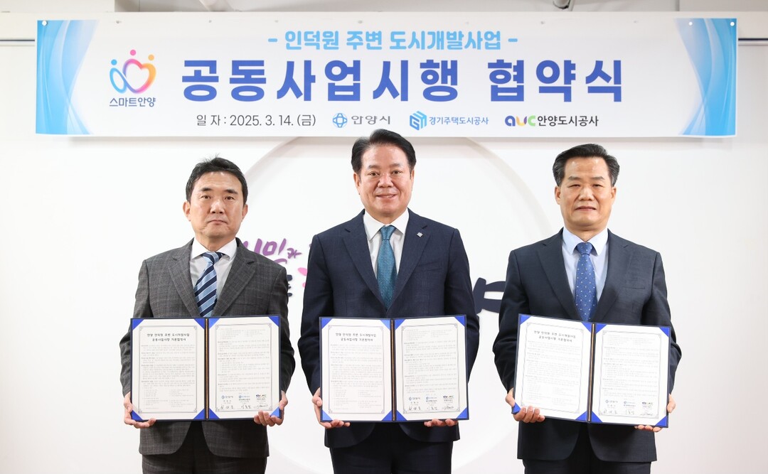 경기 안양시가 인덕원 주변 도시개발사업의 본격적인 추진을 위해 14일 경기주택도시공사(GH), 안양도시공사와 공동사업시행 기본협약을 체결했다.