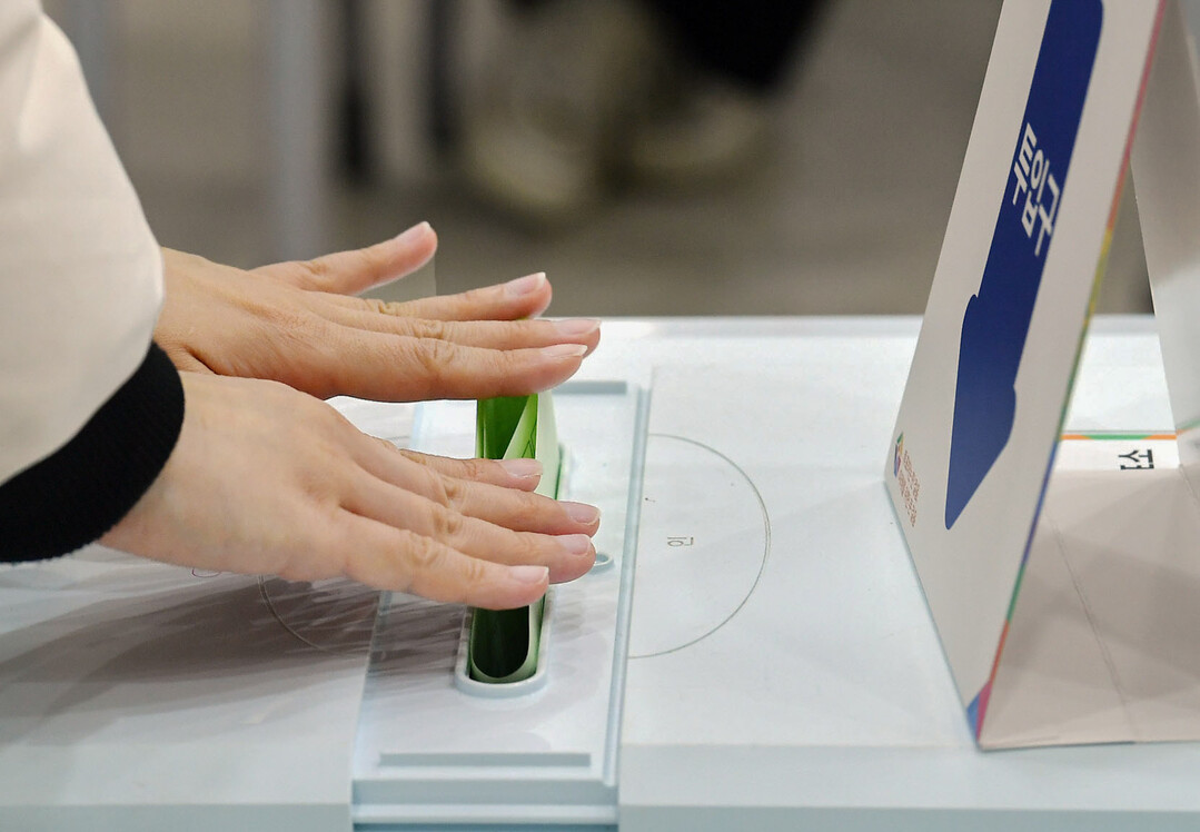 ▲ 제22대 국회의원을 뽑는 선거 본투표가 10일 오전 6시부터 전국 투표소에서 일제히 시작된 가운데 송파제3투표소에서 기표를 마친 한 유권자가 두 손으로 조심스럽게 투표지를 투표함에 넣고 있다.[이상훈 선임기자]