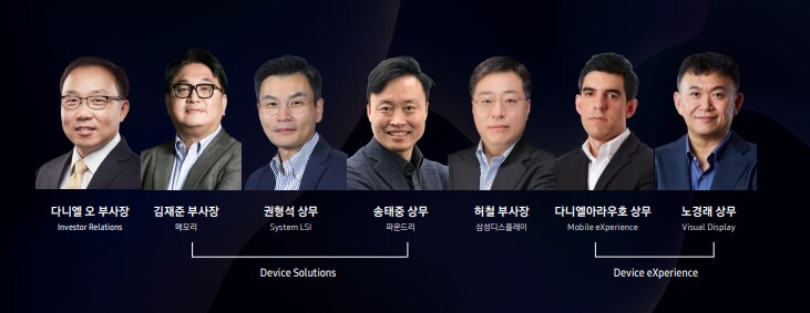 ▲ 삼성전자 1분기 실적발표 주요 발표자들. [삼성전자 1분기 경영설명회 자료 캡처]