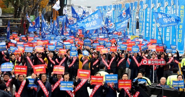 ▲  지난해 11월11일 오후 서울 중구 덕수궁 대한문 앞에서 열린 '대한민국 의료 바로세우기 제3차 전국의사 총궐기대회'에 참가한 의료인들이 오진 의료인 3인 구속 규탄 구호를 외치고 있다. [뉴시스]