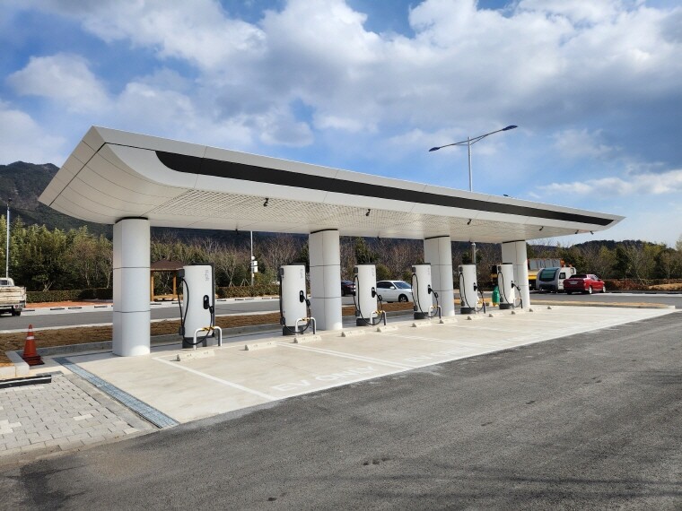 | ▲ 남양만남의광장에 설치된 초고속 전기차충전소 모습 [사천시 제공] |