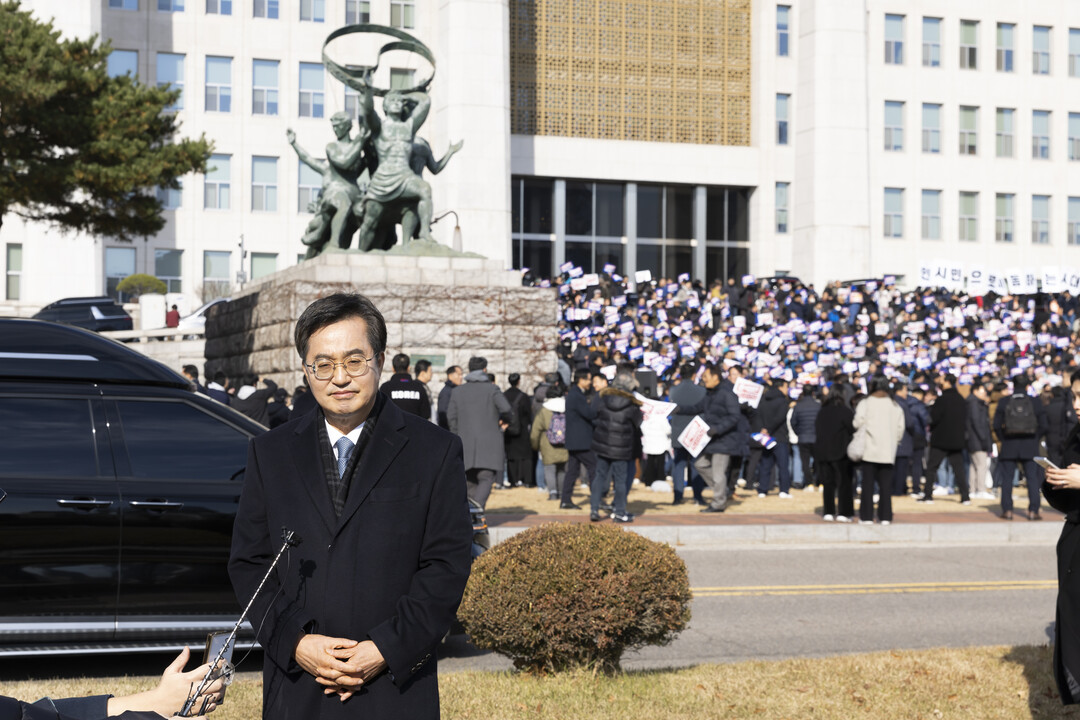 ▲ 4일 국회 시국집회 전 계엄선포 관련 입장 밝히는 김동연 경기도지사. [경기도 제공]