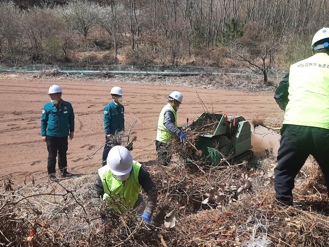 | ▲ 영농부산물 파쇄지원단 활동 모습 [의령군 제공] |