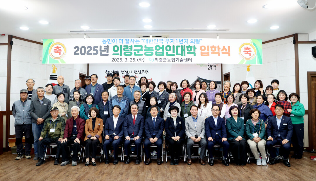 2025년 의령군농업인대학 입학식이 지난 25일 의령군농업기술센터에서 오태완 군수와 군의원, 교육생 등 70여 명이 참석한 가운데 열렸다.