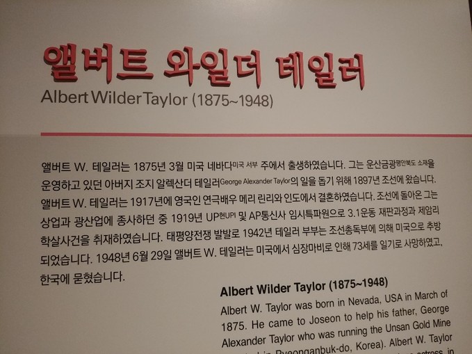 1919년 당시 3·1운동을 세계에 알린 사람이 있다. 아버지를 따라 한국에 금광사업을 하러 왔던 미국인 앨버트 와일더 브루스 테일러(Albert Wilder Bruce Taylor)다. 앨버트 테일러는 독립선언서를 한국 밖으로 빼내 일제의 탄압과 한국의 독립운동을 처음으로 세계가 알게 한 인물이다.