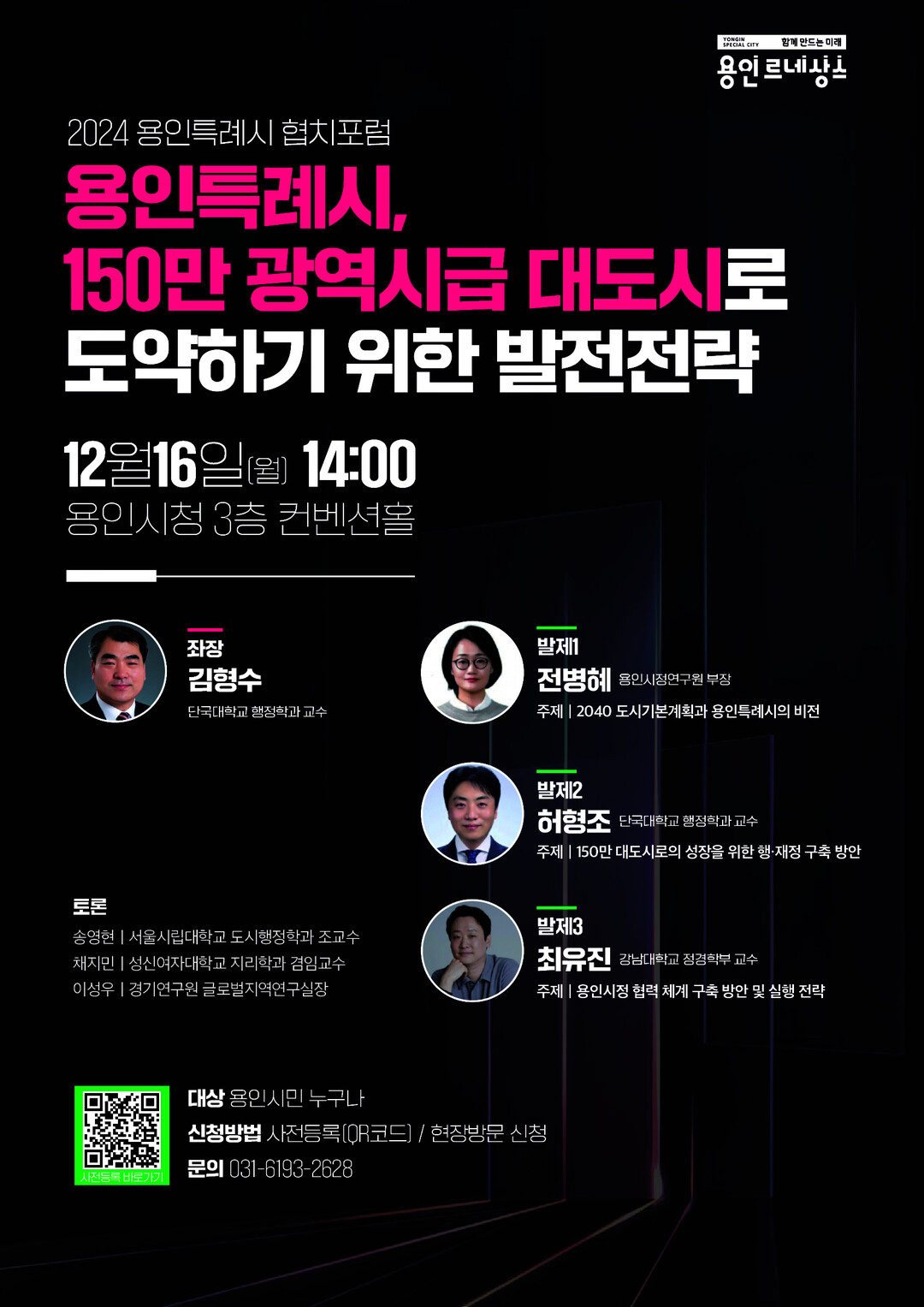 포럼은 용인시민이라면 누구나 참여할 수 있다. 참가를 희망하는 시민은 홍보 포스터의 QR코드를 통해 온라인 신청하거나 행사 당일 현장을 방문하면 된다.