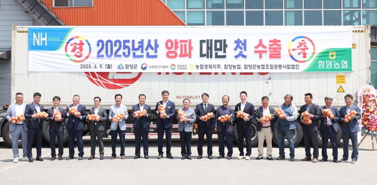 경남 함양군은 9일 오전 농협 산지유통센터(조합장 강선욱)에서 농협 주관으로 2025년산 양파를 올해 첫 대만으로 수출하는 선적식을 개최했다.