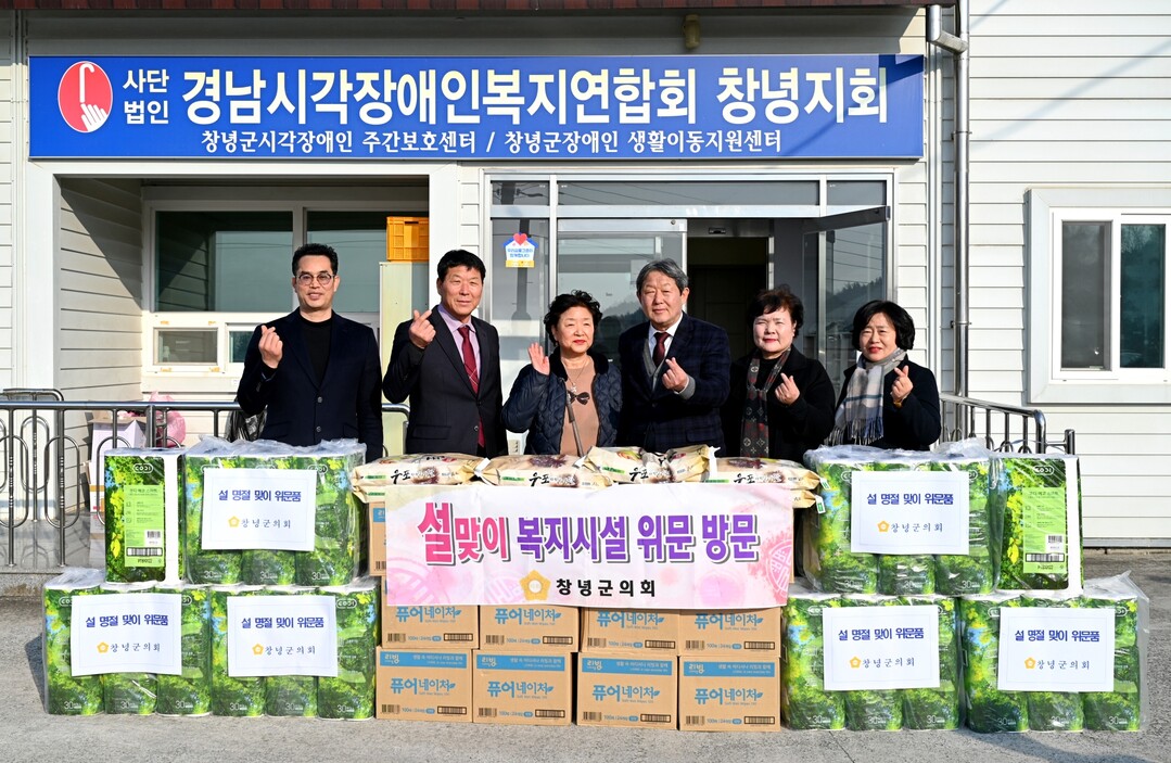 경남 창녕군의회는 지난 21일 설 명절을 맞아 창녕읍 탐하리에 소재한 시각장애인주간보호센터를 방문해 위문품을 전달했다.
