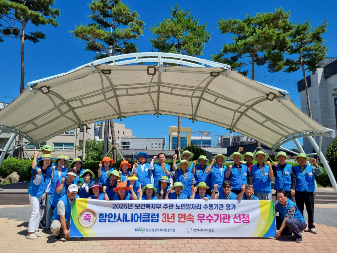 함안시니어클럽은 보건복지부와 한국노인인력개발원 공동 주관 '2025년 노인일자리 및 사회활동 지원사업(2024년도 실적) 평가'에서 3년 연속우수 수행기관으로 선정됐다고 30일 밝혔다.