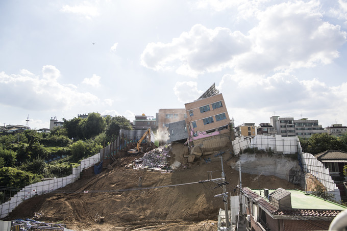 구청은 이날 오후 3시까지 건물 전면부의 필로티를 제거하는 1차 작업을 끝내고 철거장비를 투입해 오후 4시부터 2차 작업을 진행할 방침이다.