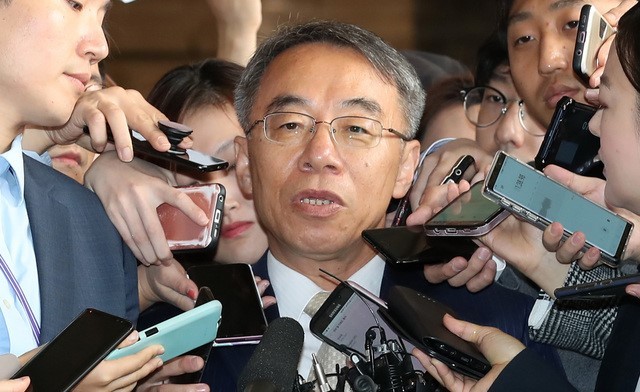 ▲ 양승태 전 대법원장 시절 '사법농단' 의혹의 핵심으로 평가 받는 임종헌 전 법원행정처 차장이 15일 오전 서울 서초구 서울중앙지방검찰청에 피의자 신분으로 출석해 취재진의 질문을 듣고 있다. [뉴시스]
