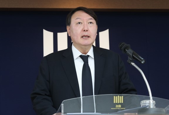 ▲ 윤석열 서울중앙지검장이 지난 1월 2일 서울 서초구 서울중앙지방검찰청에서 열린 시무식에서 법무부 장관의 신년사를 대독하고 있다. [뉴시스]