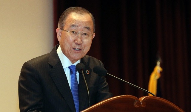 ▲ 반기문 전 UN 사무총장이 25일 오전 정부세종청사 대강당에서 'UN과 반부패'라는 주제로 특강을 하고 있다. [뉴시스]