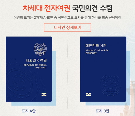 한편 이번 공개된 차세대 여권의 디자인 시안은 2007년 여권 디자인 공모전 최우수작을 보완해서 선정 됐으며 최종 결정에 앞서서 국민의견을 수렴 중이다.
