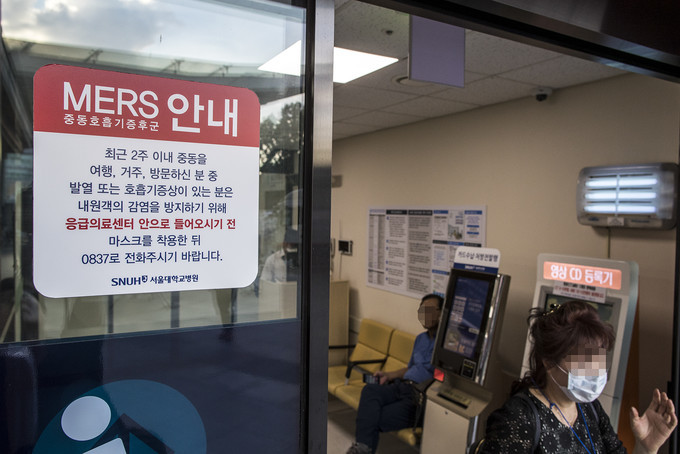 ▲ 지난해 9월 9일 서울 종로구 서울대학교병원 응급의료센터 앞에 중동호흡기증후군(MERS·메르스) 관련 안내문이 붙어있다. [정병혁 기자]