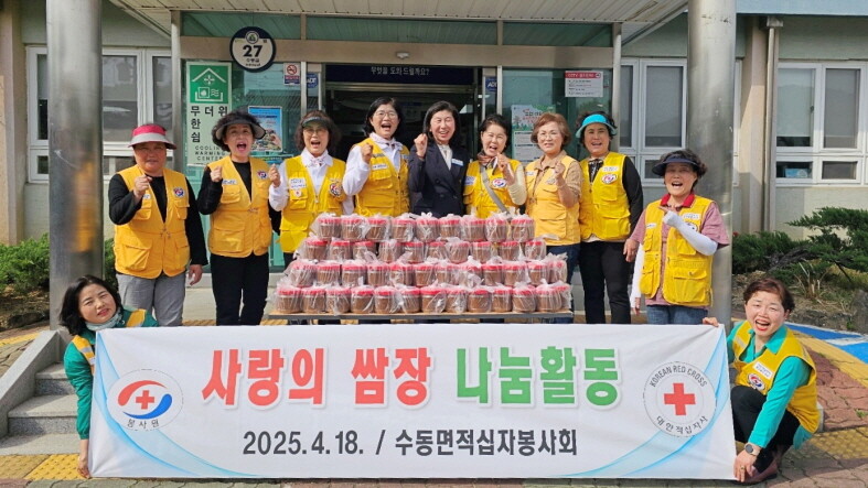 김용옥 수동면 적십자봉사회 회장은 "작은 쌈장이지만 어르신들께 따뜻한 식사를 챙기시는 데 도움이 되었으면 한다"며 "앞으로도 이웃들과 따뜻한 마음을 나눌 수 있는 다양한 봉사활동을 지속해 나가겠다"고 전했다.