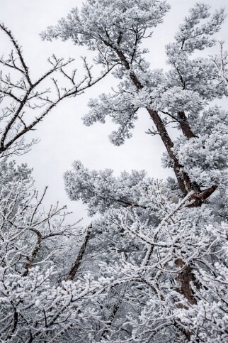 상고대는 차가운 공기와 수증기가 만나 만들어지는 겨울철 자연현상으로, 눈과는 또 다른 섬세한 아름다움을 지닌다. 상고대가 만들어낸 풍경은 단순한 설경을 넘어 계절이 빚어낸 예술 작품처럼 깊은 인상을 남긴다.