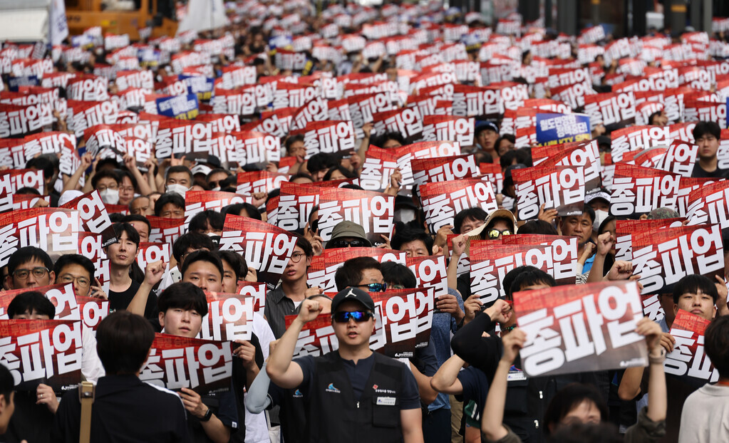14일 오전 9시부터 파업에 들어간 철도노조가 낮 12시에 서울역 앞에서 총파업 출정식을 열었다.