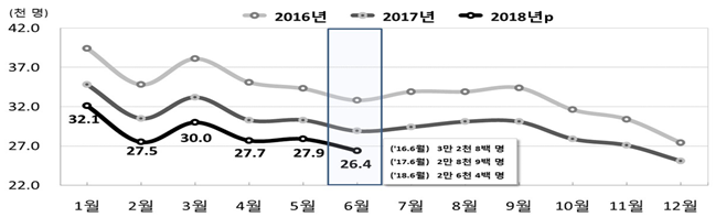 1981년 관련 통계가 집계되기 시작한 이래 6월 중 가장 적으며, 전체를 통틀어서도 지난해 12월(2만5,000명)에 이어 역대 두 번째로 적다.