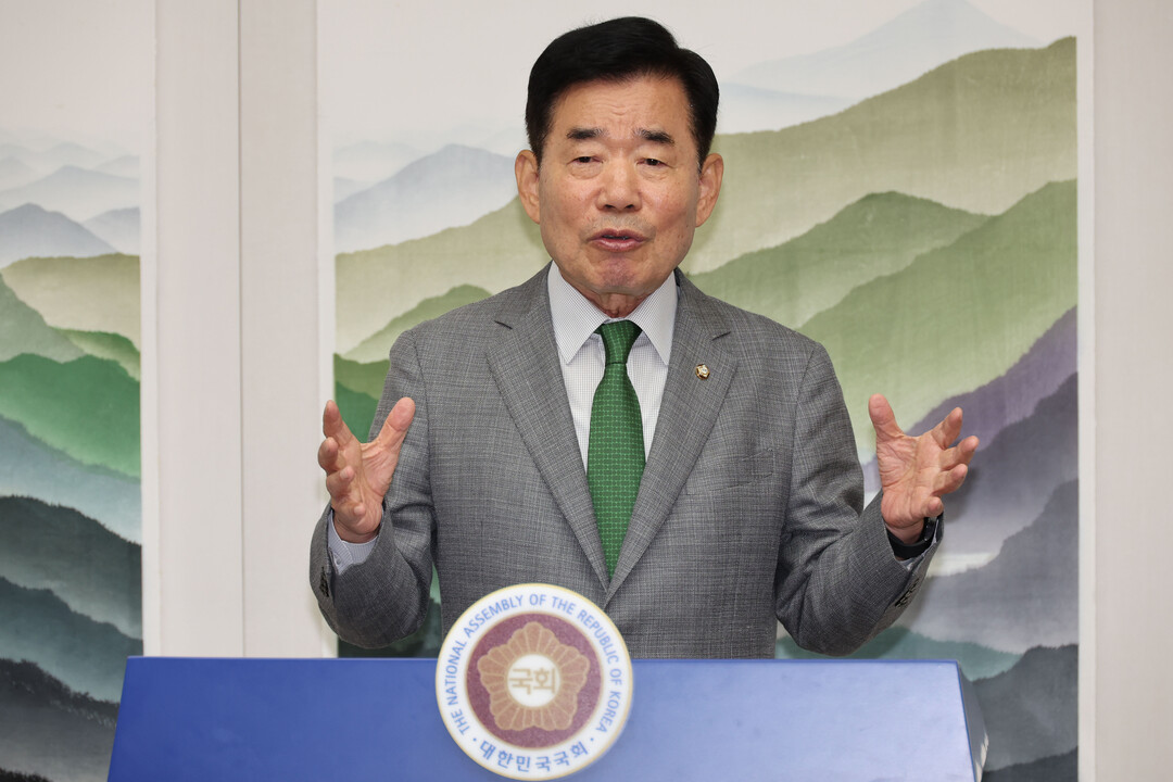| ▲ 김진표 국회의장이 26일 오전 서울 여의도 국회 국회의장 집무실에서 연금개혁 관련 기자간담회를 했다. [뉴시스] |