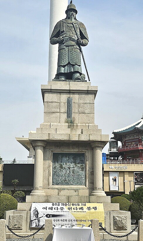 ▲ '여해다풍 헌다례' 행사가 열린 용두산공원 이순신 장군 동상 앞 모습. [최재호 기자]