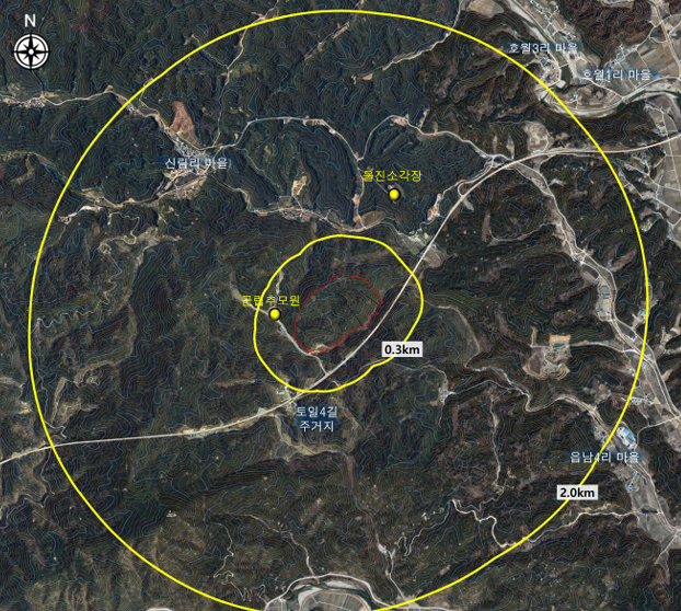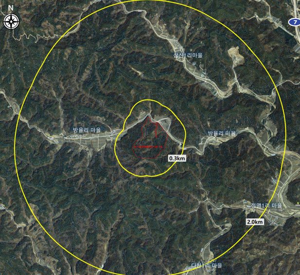| ▲ 울진 생활폐기물처리시설 입지 후보지 중 한 곳인 기성면 방율리 위치도. [울진군 제공] |