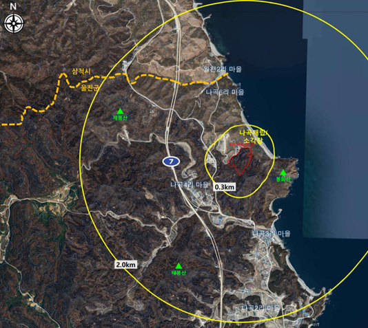 | ▲ 울진 생활폐기물처리시설 입지 후보지 중 한 곳인 북면 나곡리 위치도. [울진군 제공] |