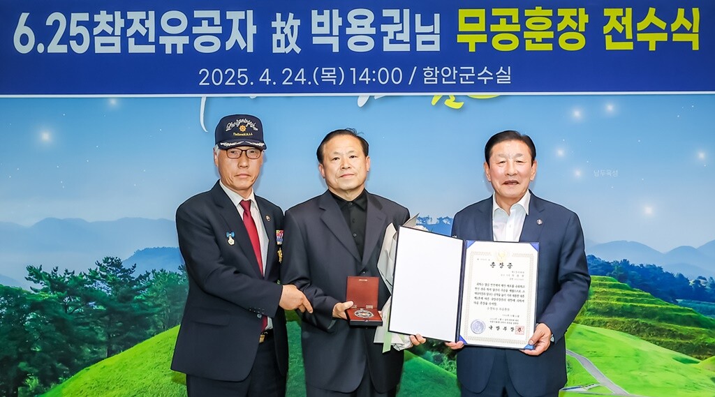 함안군은 지난 24일 군청 군수실에서 6.25전쟁 참전용사인 고(故) 박용권님에 대한 무공훈장 전수식을 개최했다고 밝혔다.