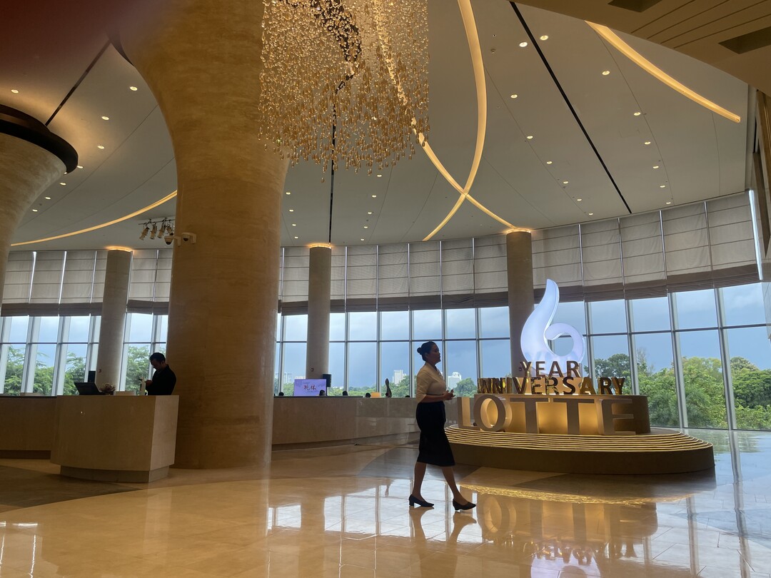 | ▲ 9월27일 미얀마 양곤 인야호 주변에 들어선 롯데호텔 로비를 한 투숙객이 걸어가고 있다. [송창섭 기자] |