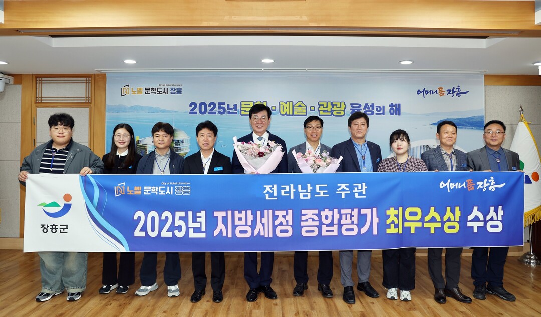 장흥군이 전남도의 2025년 지방세정 종합평가에서 군 단위 1위(전체 2위)를 차지해 '최우수상'을 수상했다고 19일 밝혔다.