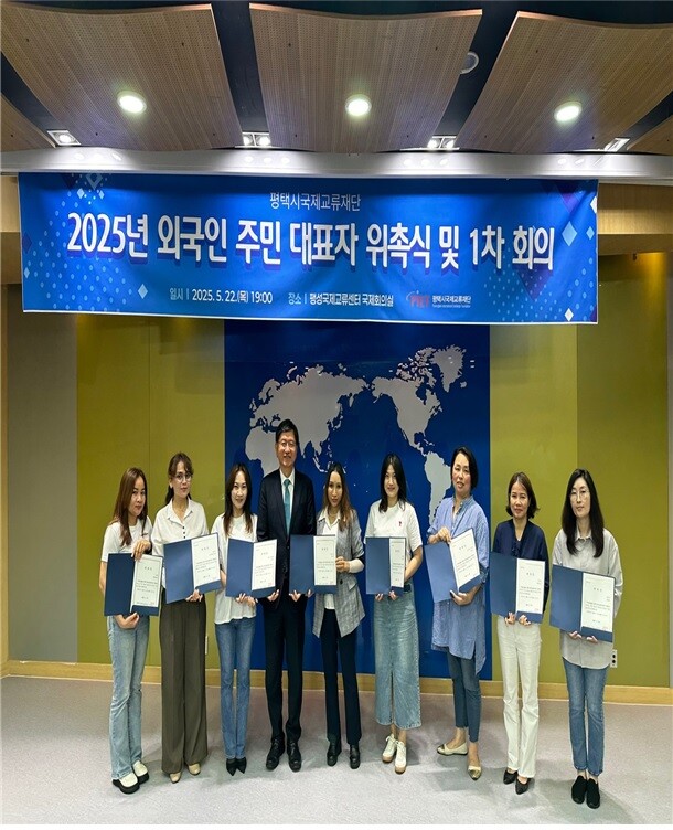 23일 평택시국제교류재단에 따르면 지난 22일 '2025년 외국인 주민 대표자'를 위촉한 뒤 외국인 주민의 인권과 복지, 지역사회 내 인식 개선 방안 등에 대해 논의하는 1차 회의를 진행했다.