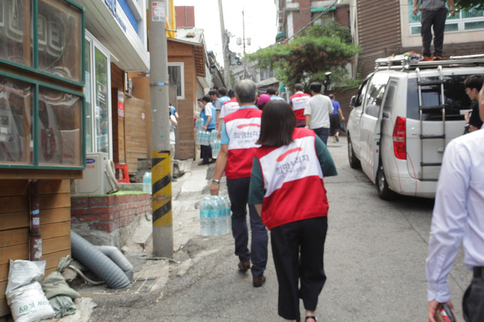 희망브리지 전국재해구호협회(회장 송필호, 이하 희망브리지)가 IBK 기업은행(은행장 김도진)과 함께 폭염에 가장 취약한 쪽방촌 주민들이 조금이나마 무더위를 식힐 수 있는 구호물품을 지원하는 긴급 구호에 나서고 있다.