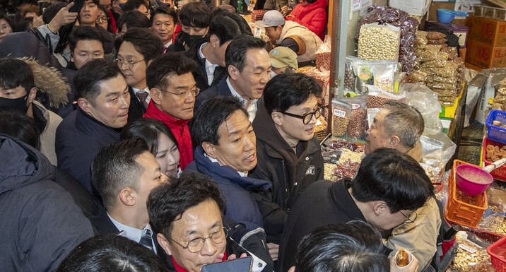 | ▲ 국민의힘 한동훈 비대위원장이 5일 설 명절을 앞두고 서울 동대문구 경동시장을 찾아 한 노인과 나누고 있다. [뉴시스] |
