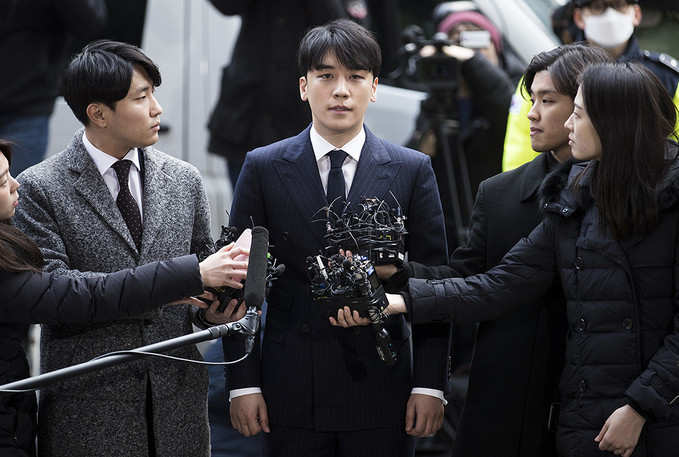 승리는 같은 날 2시 5분경 서울지방경찰청에 출석했다. 검은색 정장 차림으로 나타난 승리는 "성접대 혐의를 여전히 부인하냐"는 취재진의 질문에 "국민 여러분과 저로 인해서 상처받고 피해받으신 모든 분들께 다시 한번 고개 숙여 사죄드린다"고 말했다.