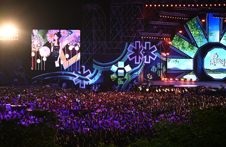 | ▲ 거창 창포원서 열린 열린음악회에서 관람객이 휴대폰 플래시로 환호를 보내고 있다. [거창군 제공] |