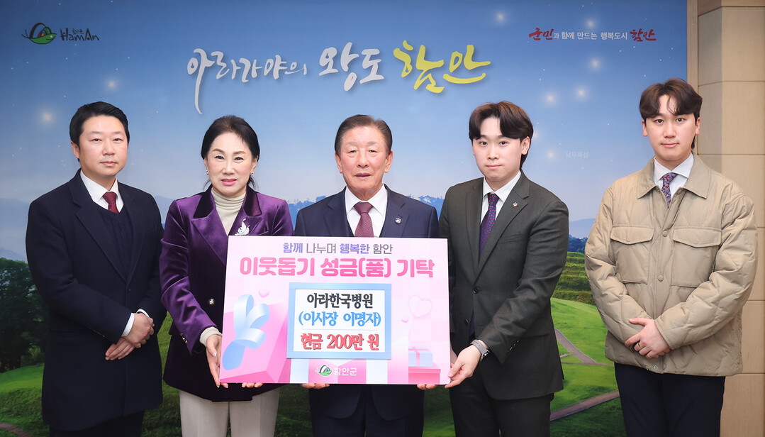 학산의료재단 아라한국병원은 함안군에 사회복지시설에 전달해 달라며 성금 200만 원을 함안군에 기탁했다.