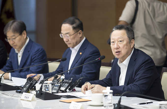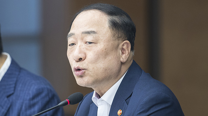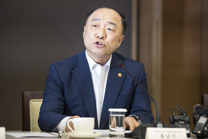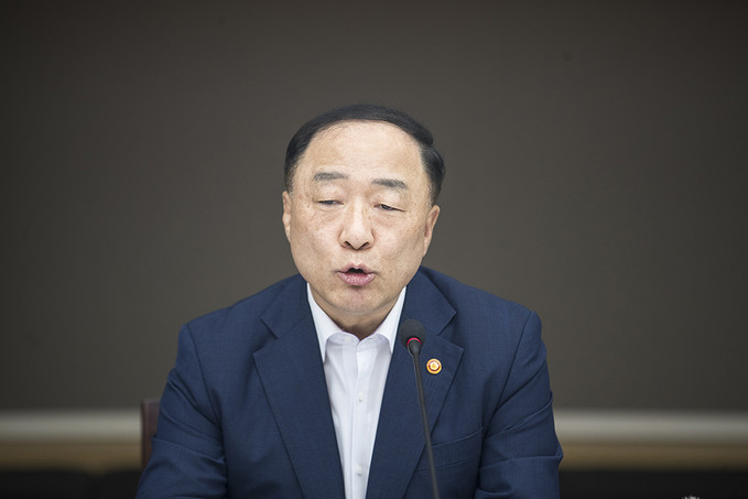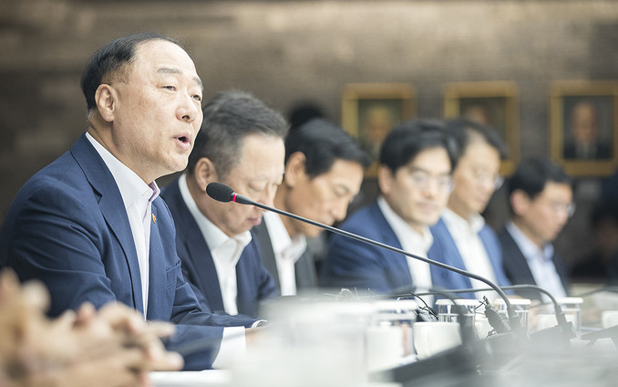 홍남기 경제부총리 겸 기획재정부 장관이 4일 오후 서울 중구 대한상공회의소에서 열린 하반기 경제정책방향 기업인 간담회에서 모두발언을 하고 있다.