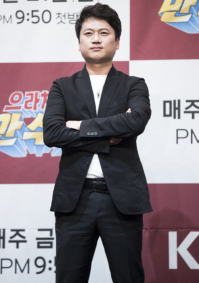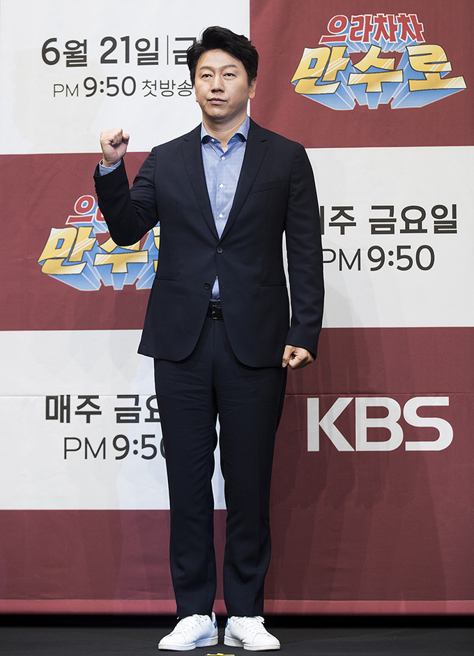 배우 김수로가 21일 서울 구로구 라마다 서울 신도림호텔에서 열린 KBS 2TV 새 예능프로그램 '으라차차 만수로'(CP 이민호, 연출 양혁) 제작발표회에서 포즈를 취하고 있다.