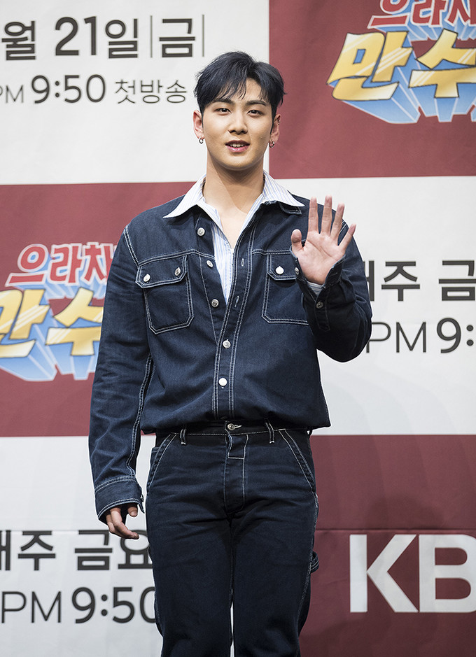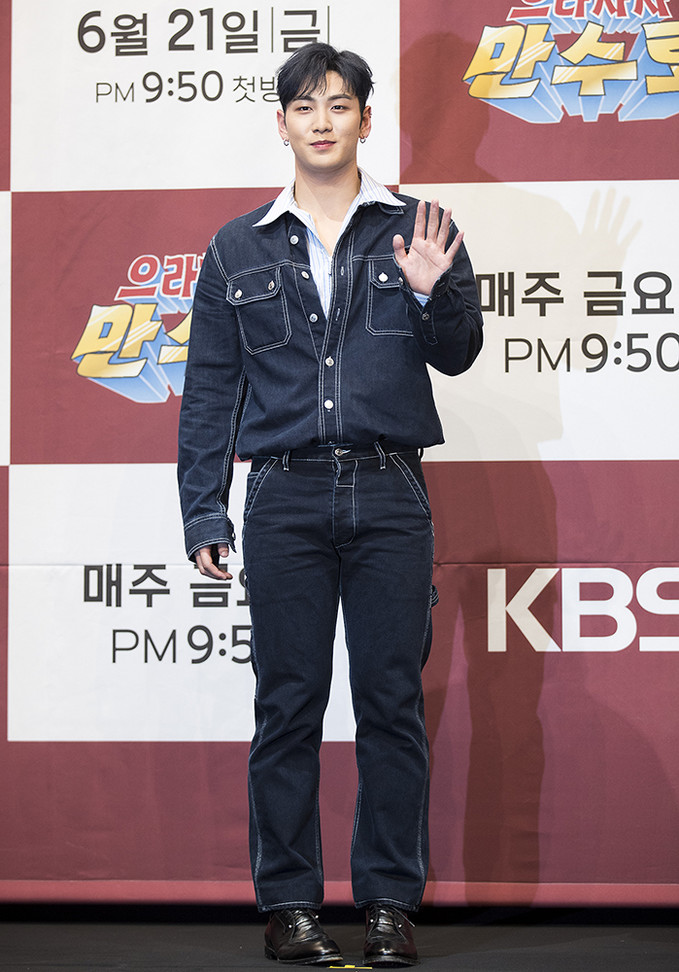 그룹 뉴이스트 멤버 백호가 21일 서울 구로구 라마다 서울 신도림호텔에서 열린 KBS 2TV 새 예능프로그램 '으라차차 만수로'(CP 이민호, 연출 양혁) 제작발표회에서 포즈를 취하고 있다.