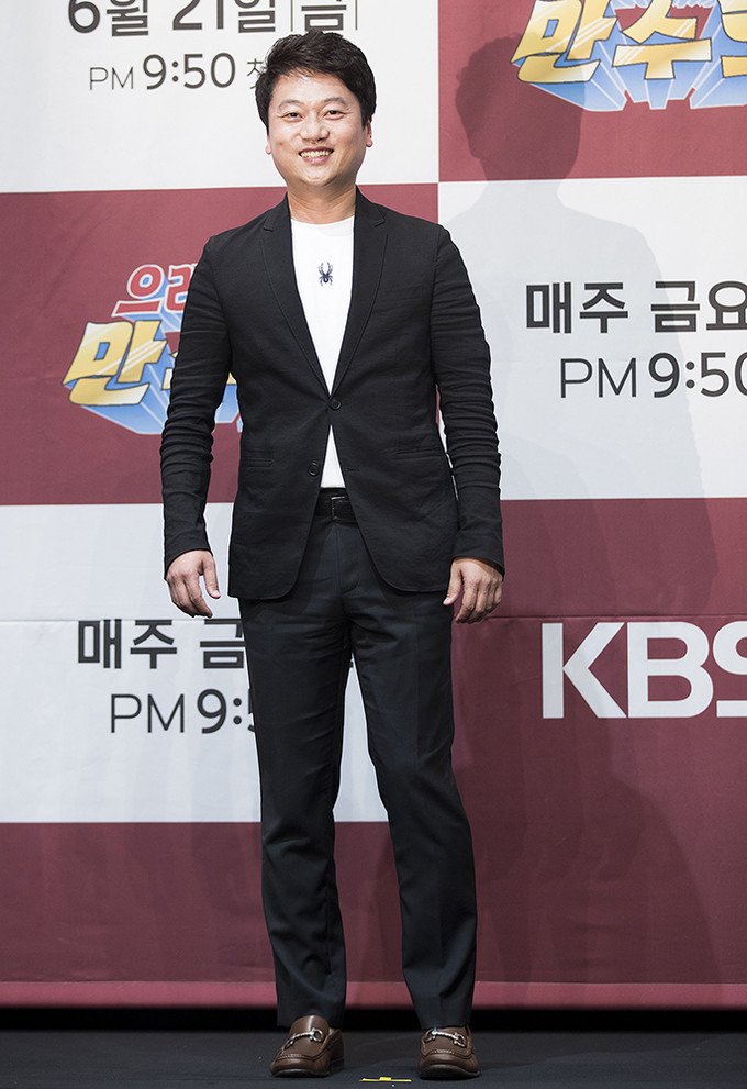 축구 해설가 박문성이 21일 서울 구로구 라마다 서울 신도림호텔에서 열린 KBS 2TV 새 예능프로그램 '으라차차 만수로'(CP 이민호, 연출 양혁) 제작발표회에서 포즈를 취하고 있다.