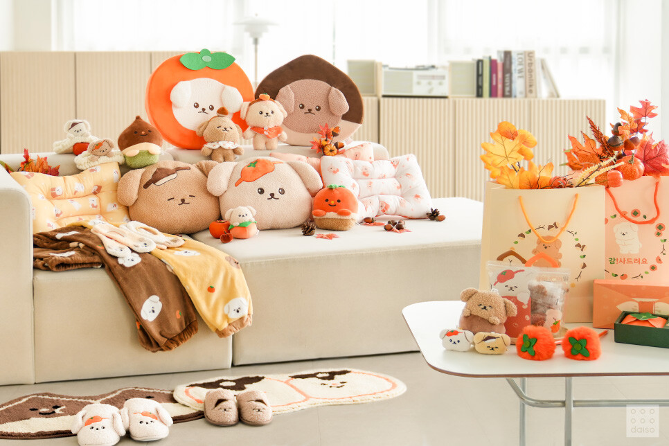이번 시리즈는 선물 포장 용품, 홈웨어, 홈 생활용품, 인형 등 총 20여 종의 상품으로 구성됐다. 가을 수확물인 감, 밤과 함께 강아지 캐릭터를 모티브로 디자인했다.